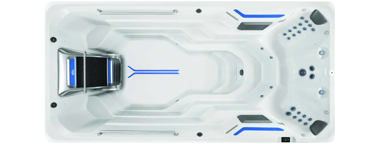 Our high-volume propeller system creates a broad, deep, non-turbulent swim current that is wider than your body and deeper than your stroke. Fully adjustable in speed, it is far and away the best swim current in the industry.