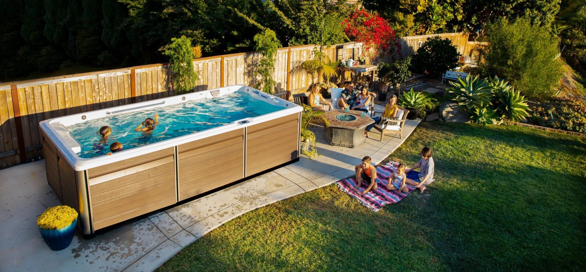 Swim spas can be installed above-ground, partially recessed, or fully in-ground, depending on your space and style preferences. Common locations include patios, decks, and landscaped backyard areas.